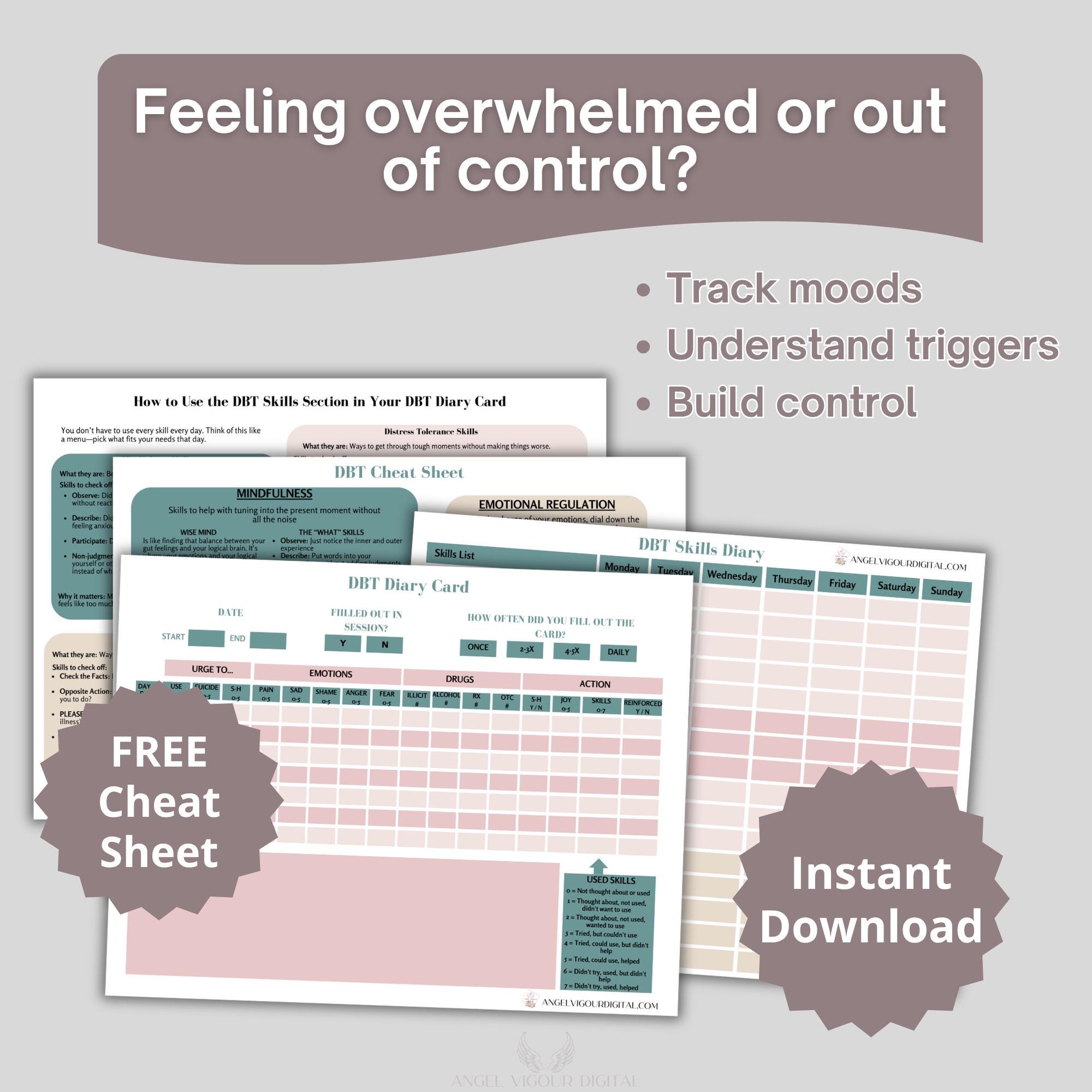 This DBT Diary Card helps you track your emotions, reduce impulsive behaviors, and start building real control โ one day at a time.